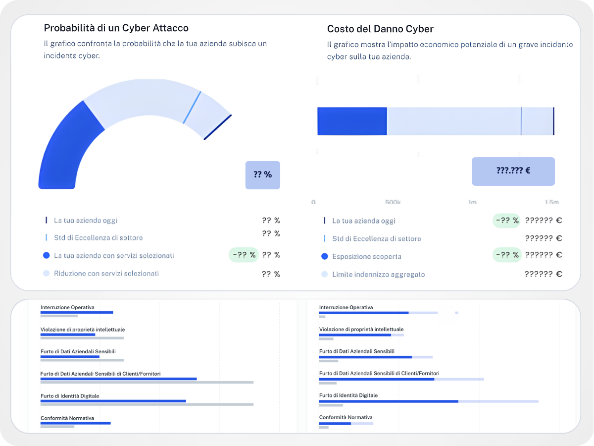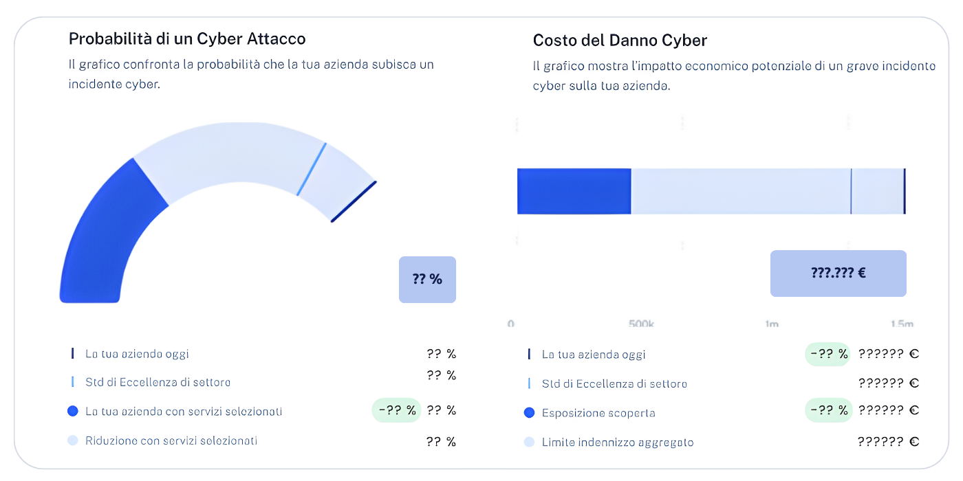 Valutazione del rischio cyber residuo e calcolo premio di polizza a copertura degli eventi avversi in caso di incidente.